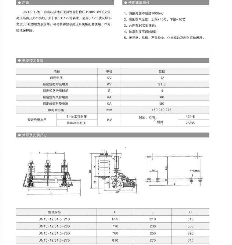 JN15-12型戶內(nèi)高壓接地開關(guān)