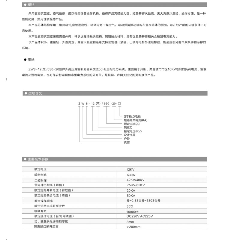 • ZW32-12(G)/630-20型戶外真空斷路器