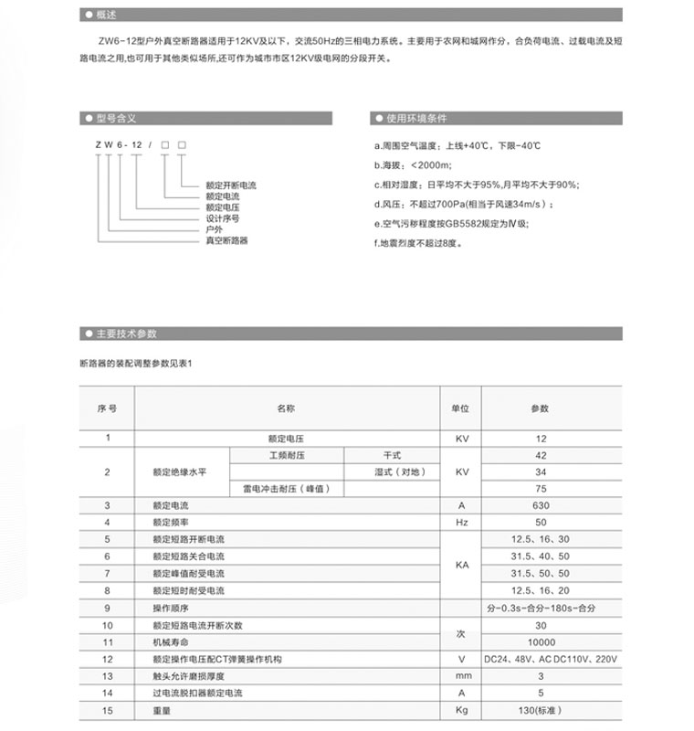 帶*項為必填項目咨詢:ZW6-12型戶外真空斷路器